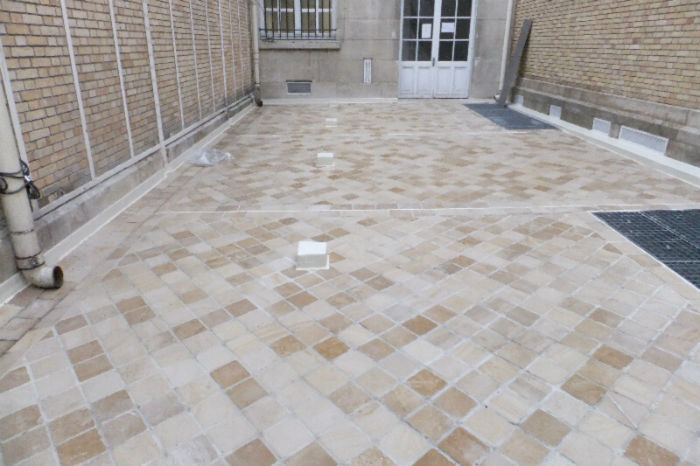 Etanchéité en résine de la cour avec protection en pierres naturelles