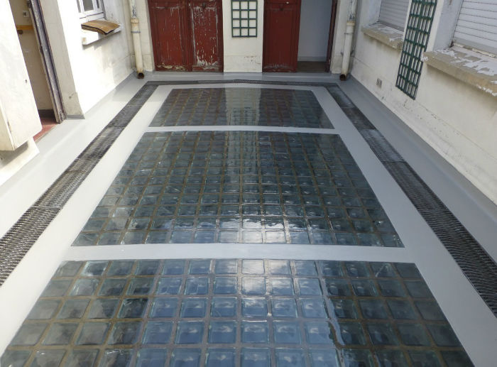 Diocèse de Paris Paroisse St Ambroise 33 AV Parmentier 75011 Paris Etanchéité liquide arméede la terrasse enpavés de verre 2013 |