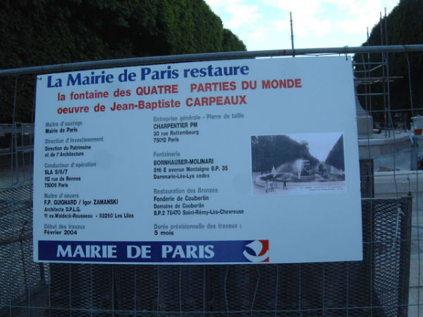 Etanchéité de la fontaine des QUATRES PARTIES DU MONDE oeuvre de Jean-Baptiste CARPEAUX