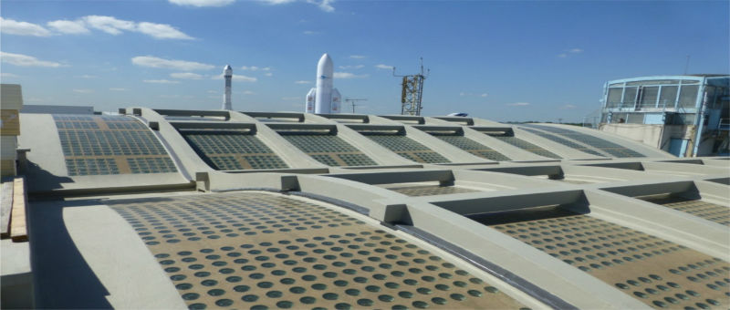 Seuls les SEL autorisent la réalisation de l’étanchéité des supports mixtes béton/pavés de verre. L’ouvrage des voûtes du Musée de l’Air et de L’Espace est l’illustration parfaite des possibilités de ces systèmes. |