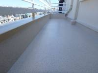 A l’inverse des terrasses, aucune règlementation n’impose l’étanchéité des balcons, loggias et coursives ; cependant elle permet d’améliorer la longévité de la structure, de prévenir la corrosion des fers d’armature et l’éclatement des bétons cause de nombreux sinistres. Malgré leur faible épaisseur, ces systèmes résistent à d’importantes sollicitations mécaniques. Dans le cas d’étanchéité de rampes d’accès et de parkings par exemple, Ceux-ci doivent obéir à des règles professionnelles précises notamment selon le type de trafic envisagé (léger ou lourd), la résistance à la glissance des couches de roulement, le pourcentage de pente rencontré… Les systèmes d’étanchéité liquide armés permettent de garantir une protection durable face aux phénomènes de fissuration liés aux fortes contraintes thermiques et mécaniques; l’incorporation dans la couche de roulement de granulats de forte granulométrie permet d’obtenir une finition rugueuse assurant la sécurité des utilisateurs. |