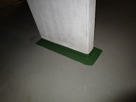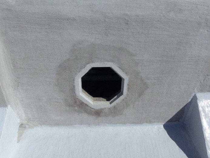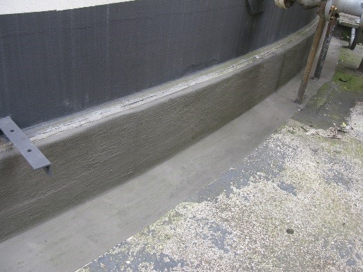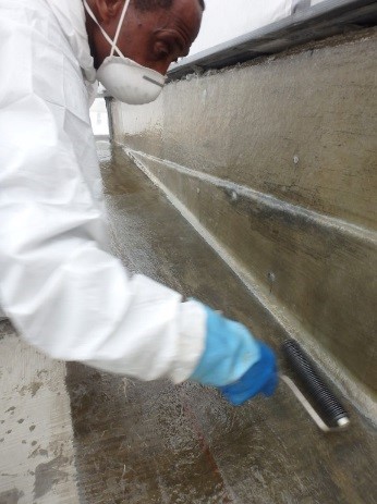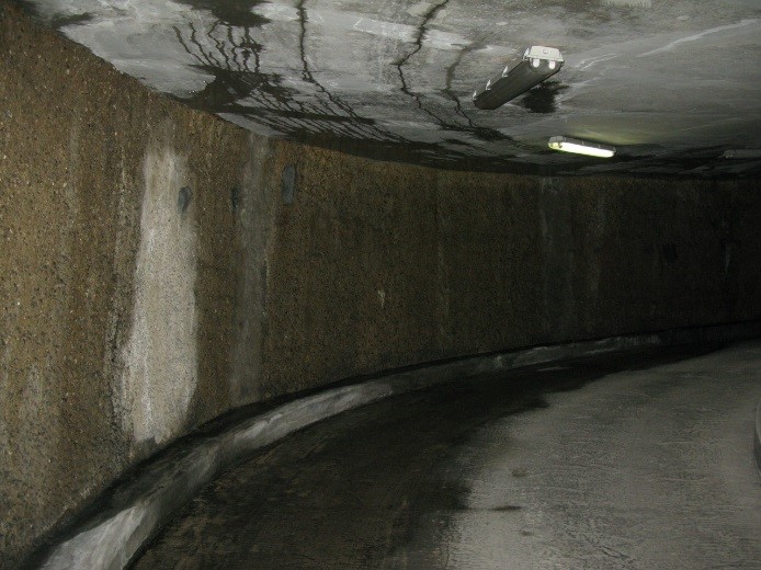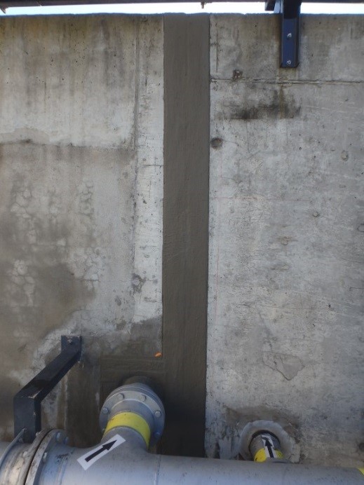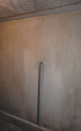 Compte tenu de l’état général des parements en béton, un mortier de surfaçage est mis en œuvre, permettant le colmatage des pores en surface et la réalisation du revêtement d’étanchéité dans de parfaites conditions. Des gorges sont également réalisées sur l’ensemble des angles rentrants. |