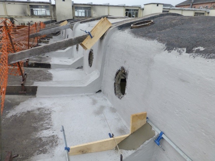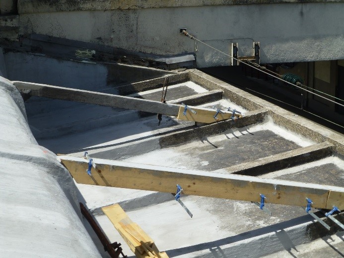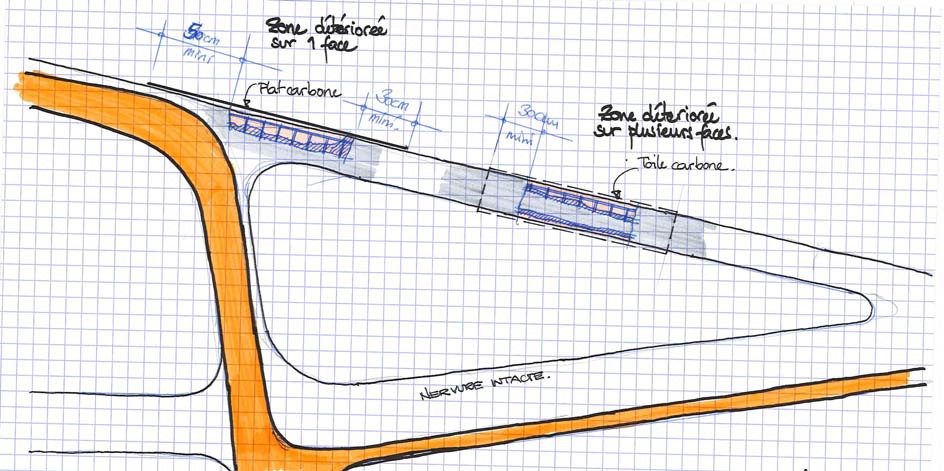 Un Bureau d’Etude Structure mandaté par la Maitrise d’Ouvrage confirme la néccessité de procéder à des confortements au droit des dégradations à l’aide d’un système composite à base de fibres et tissus carbones. |