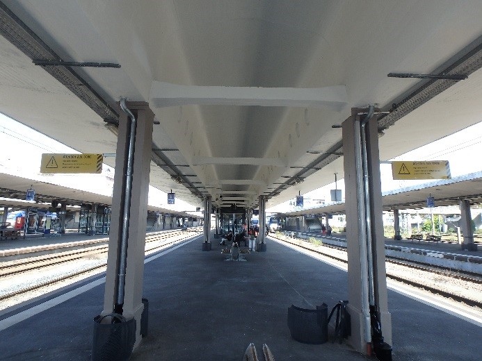 Chantiers de référenceD’août 2006 à janvier 2007 SERTEC a réalisé les travaux de régénération et d’étanchéité des 3 marquises de la gare TGV de REIMS (51000) pour le compte de la SNCF et sous le contrôle de l’Agence Bâtiment Energie de Reims. L’opération consistait à réaliser l’étanchéité de l’extrados des marquises sur une surface de 3 050 m², ainsi que la restructuration et la protection des bétons des sous faces et pignons d’une surface de 2 880 m². Ces travaux ont été réalisés en grande partie sous consignation caténaire de 22h00 à 5h00 et ce sont terminés avec un mois d’avance sur le planning, à l’entière satisfaction du client. |